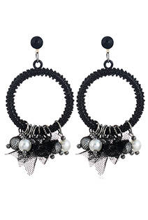[Kirim dari Jakarta] Fashion Personality Rice Beads Pearl Tassel Earrings Color Black Black