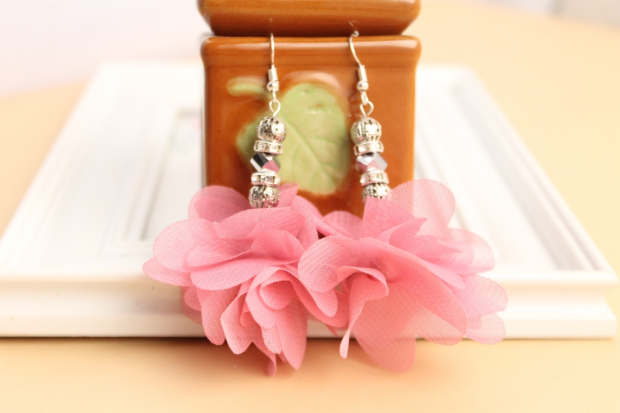 Bahan anting dan rantai : besi Hiasan : - bunga frill sifon - kristal