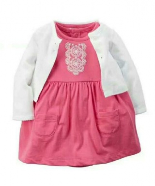 White Cardigan and Dark Pink Romper set
